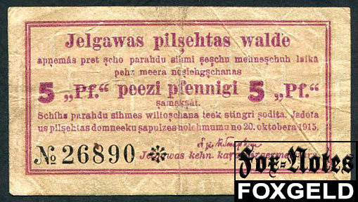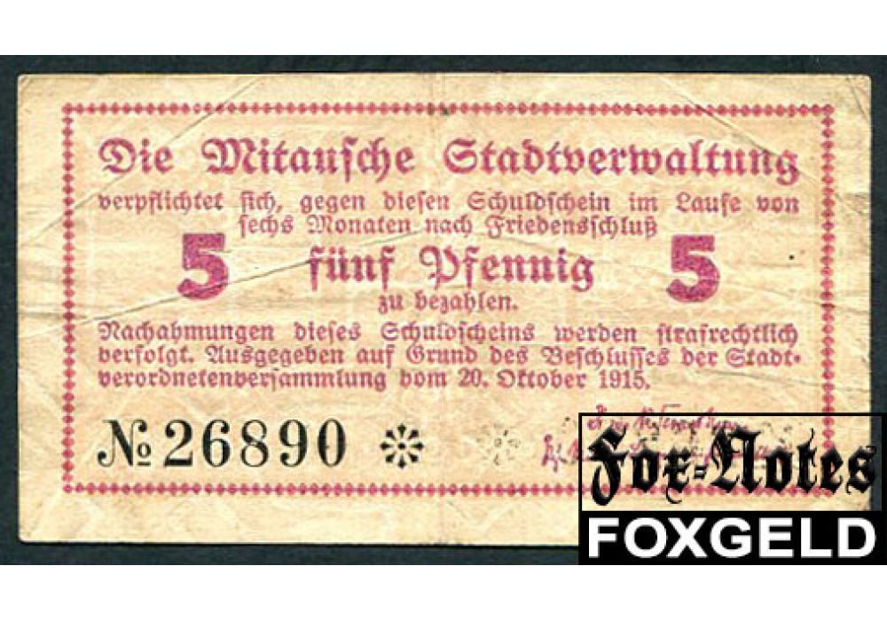Митава Mitausche Stadtverwaltung 5 пфеннигов 1915 aVF FN:F2000.31.1b 3500 РУБ