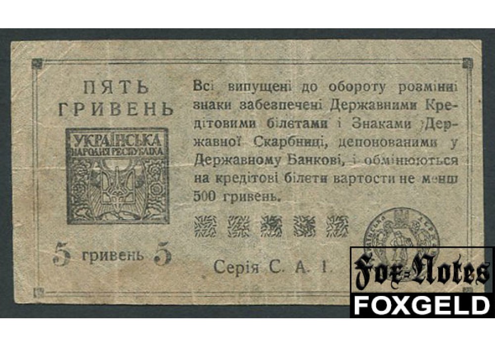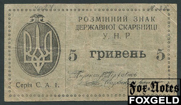 Украина 5 гривен ND(1919) FN:Е30.24.1b {1}
