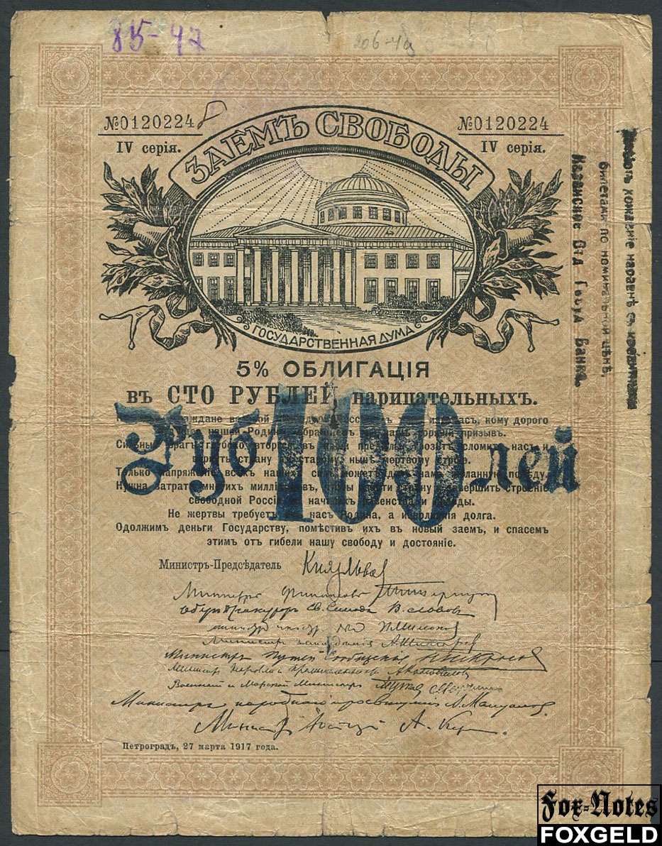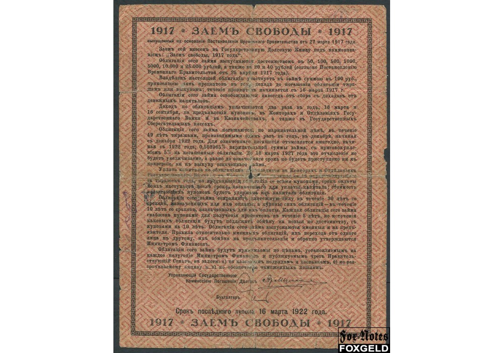 Денежный знак 1918 год (5 % Облигация "Заем Свободы, 1917 года")