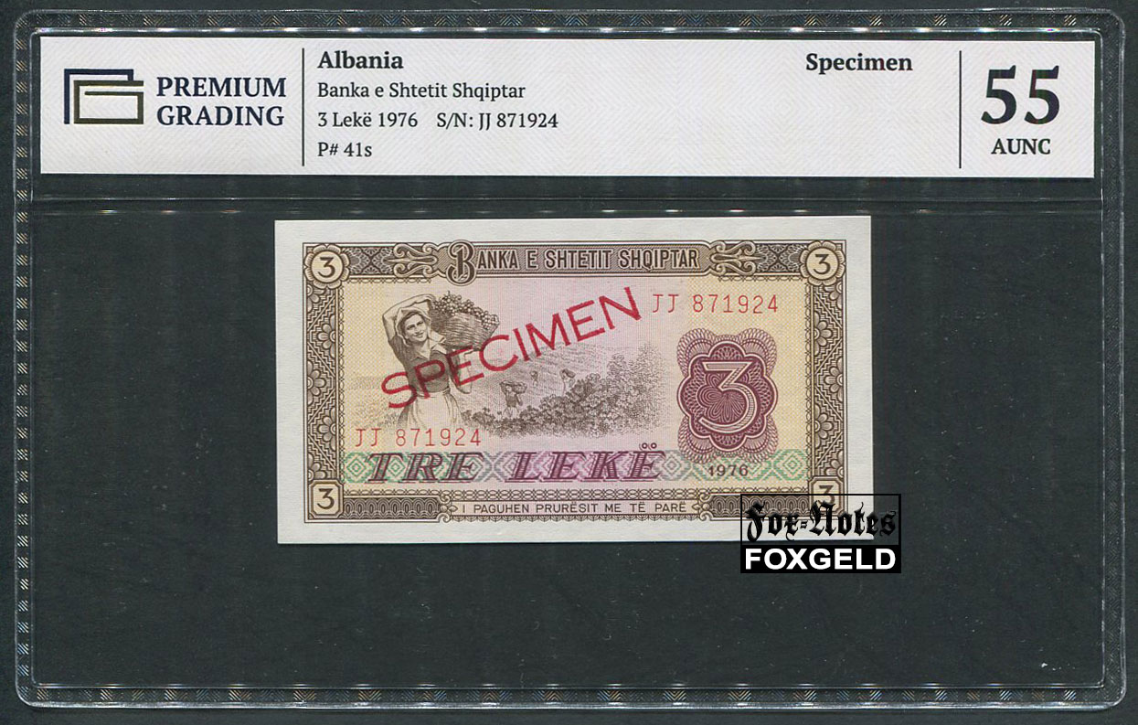 Албания 3 леке 1976 SPECIMEN (ОБРАЗЕЦ) Слаб PG 55 aUNC P:41s2 2500 РУБ