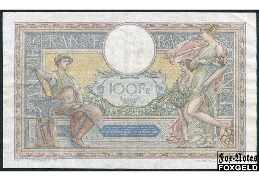 Banque de France 100 франков тип 1906 г. "Luc Olivier Merson"