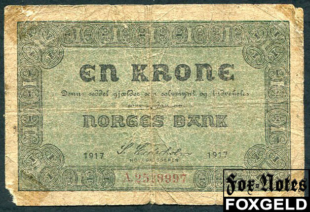 Норвегия Norges Bank 1 крона 1917 VG P:13 1000 РУБ