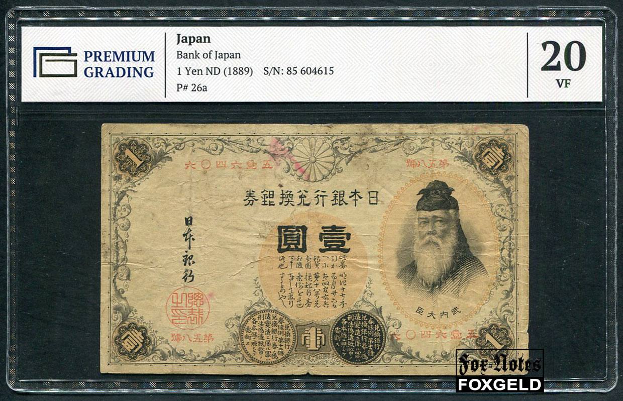 Япония 1 иена 1889 Слаб Premium Grading 20 VF P:26 12500 РУБ