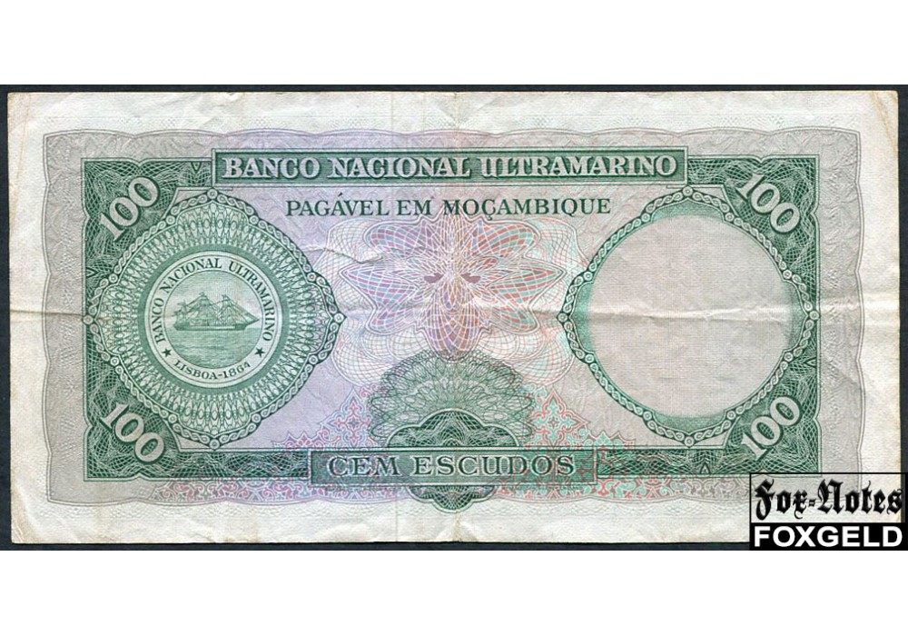 Мозамбик 100 эскудо 1961 В/з герб. Sign. Machado, Real F P:109a 1700 РУБ