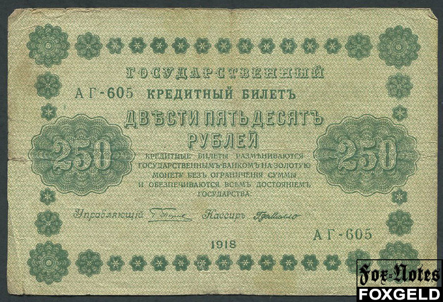РСФСР 250 рублей 1918 УФГ. ГдеМилло FN:116.1c АГ-605