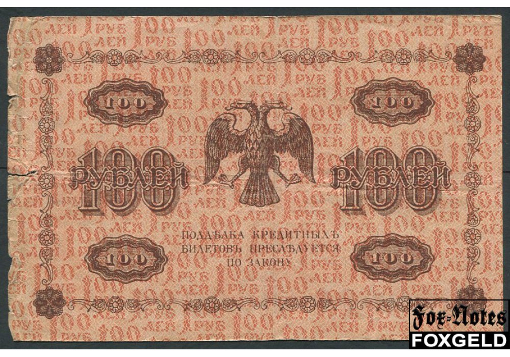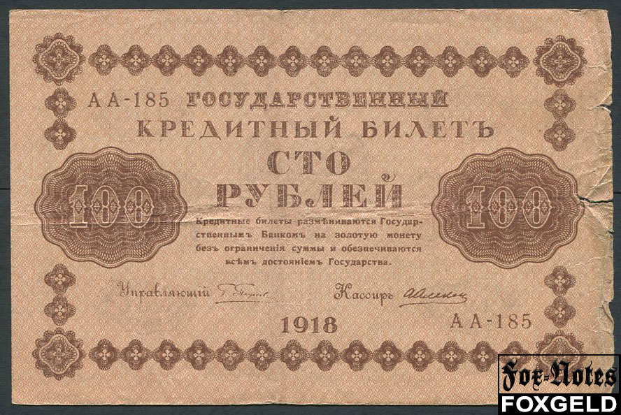 РСФСР 100 рублей 1918 ПФГ. Алексеев FN:115.1a АА-185