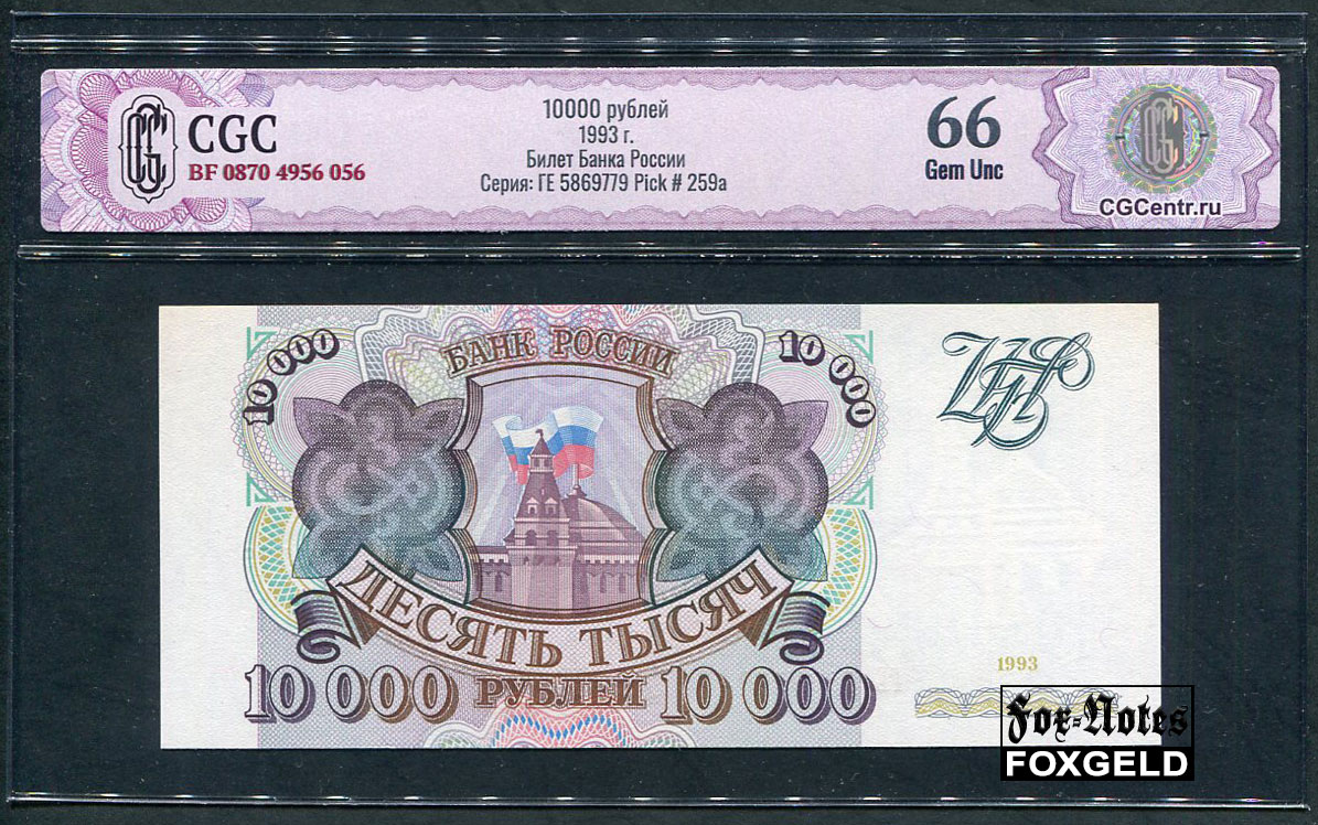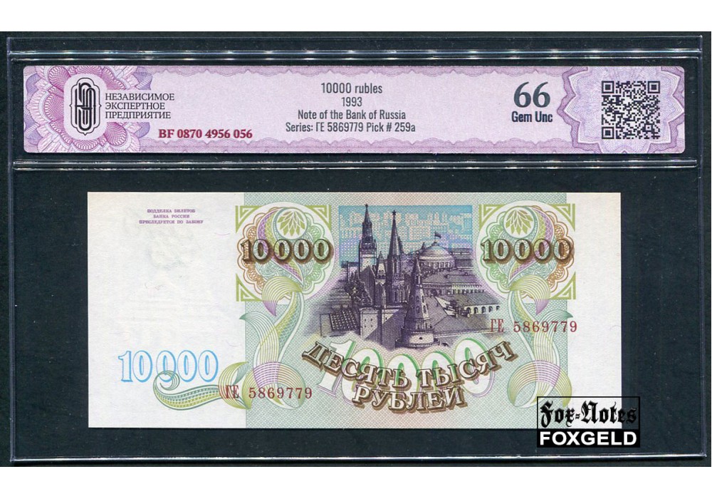 Российская Федерация Россия 10000 рублей 1993 Слаб ZG. 66 Gem UNC FN:242.1 9000 РУБ