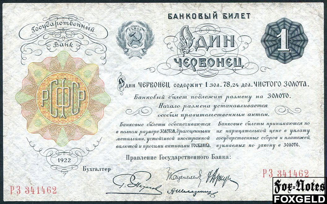 РСФСР 1 червонец 1922 Пятаков FN:180.2 РЗ341462