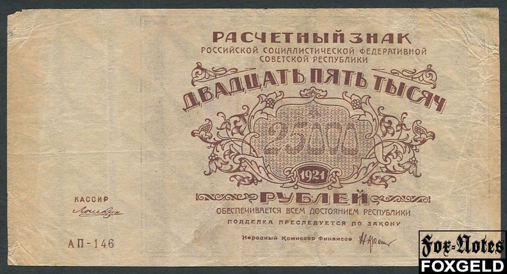 РСФСР 25000 рублей 1921 УФГ. В/з Большие теневые звезды Лошкин F FN:139.1b 2500 РУБ