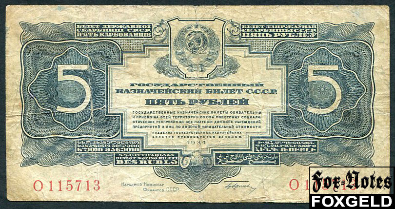 СССР 5 рублей 1934 1 выпуск. Однолитерная VG-aF FN:208.1a 8500 РУБ