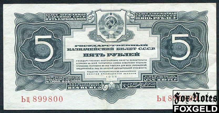 СССР 5 рублей 1934 VF FN:208.2 6500 РУБ