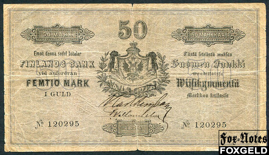 Финляндия Финляндский Банк 50 марок золотом 1884 FN:А100.29.1 №120295