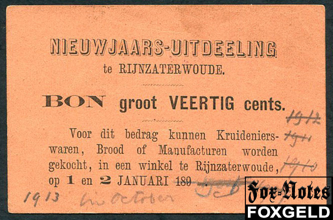 Нидерланды Rijnzaterwoude NIEUWJAARS-UITDEELING 40 центов 1897 AA0000147
